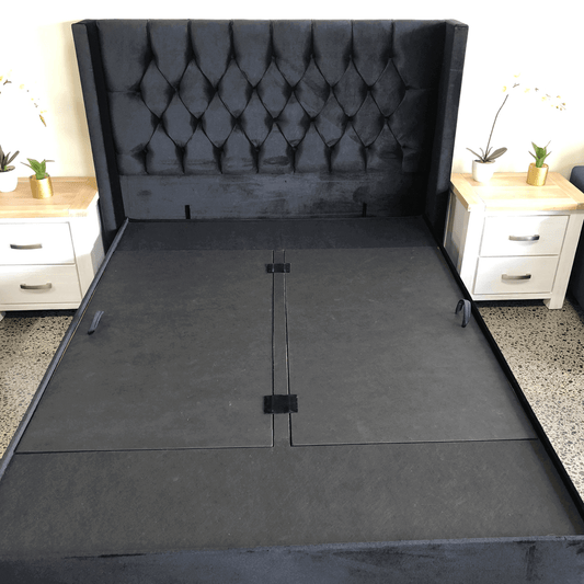 Nap Time Mattress + Storage Base + Wingback Buttoned Headboard