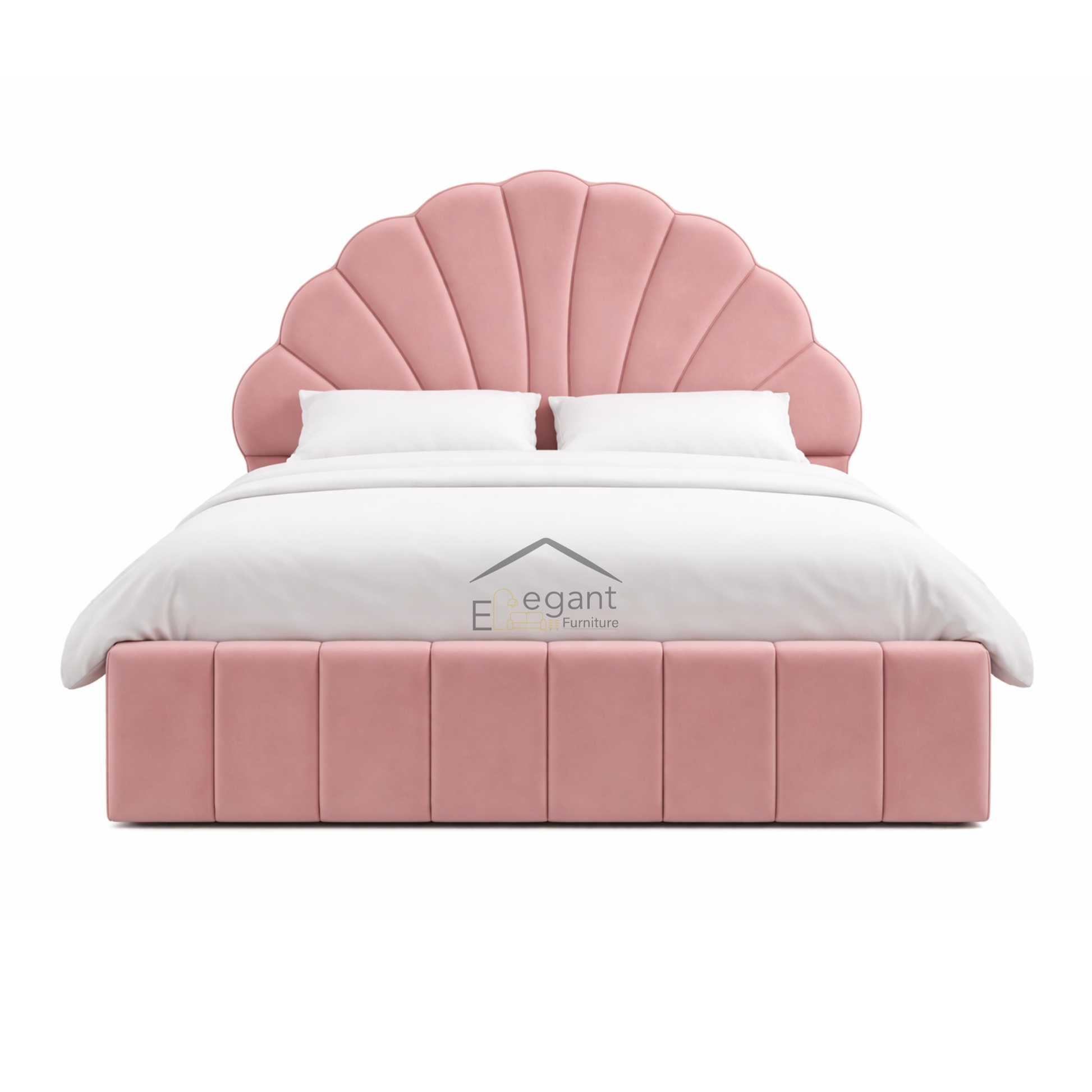Make a statement in your bedroom with our Blossom Shell Bed, featuring a stunning scalloped headboard inspired by the soft curves of a seashell. Upholstered in luxurious blossom velvet, this design brings elegance, texture, and a touch of glamour to any modern space.