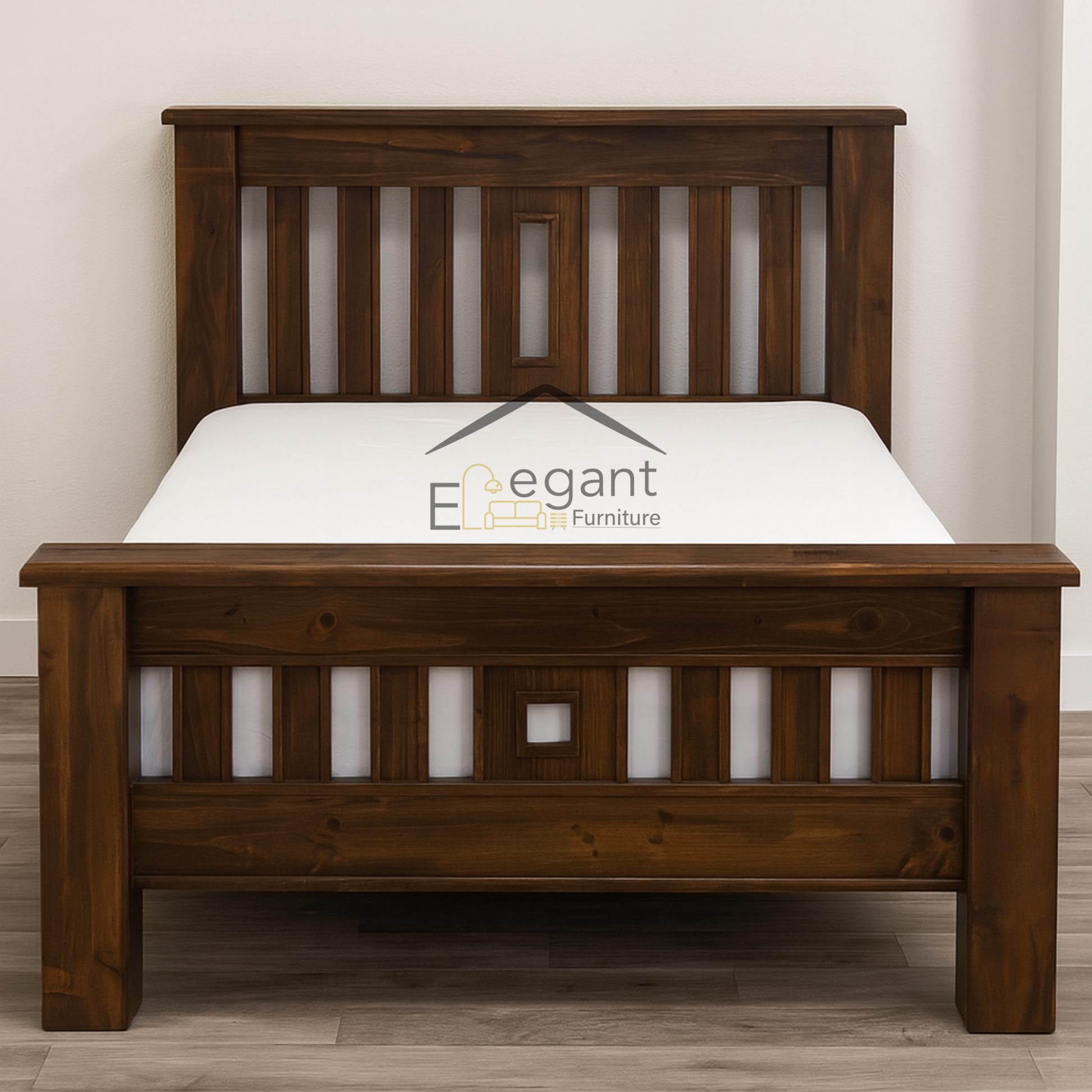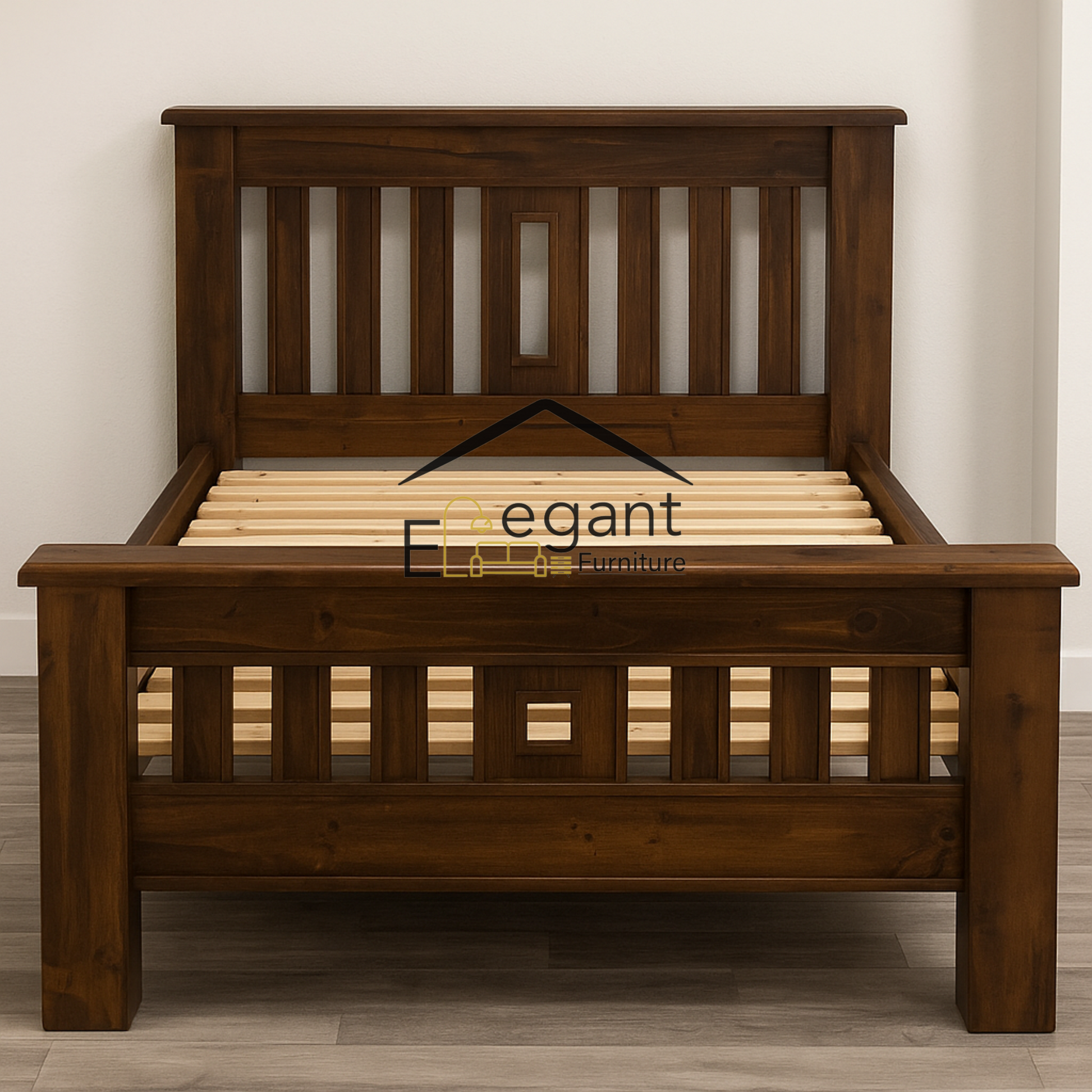 Felton Bed Outline highlights a strong, slatted base. It is made from NZ pine - strong and reliable.