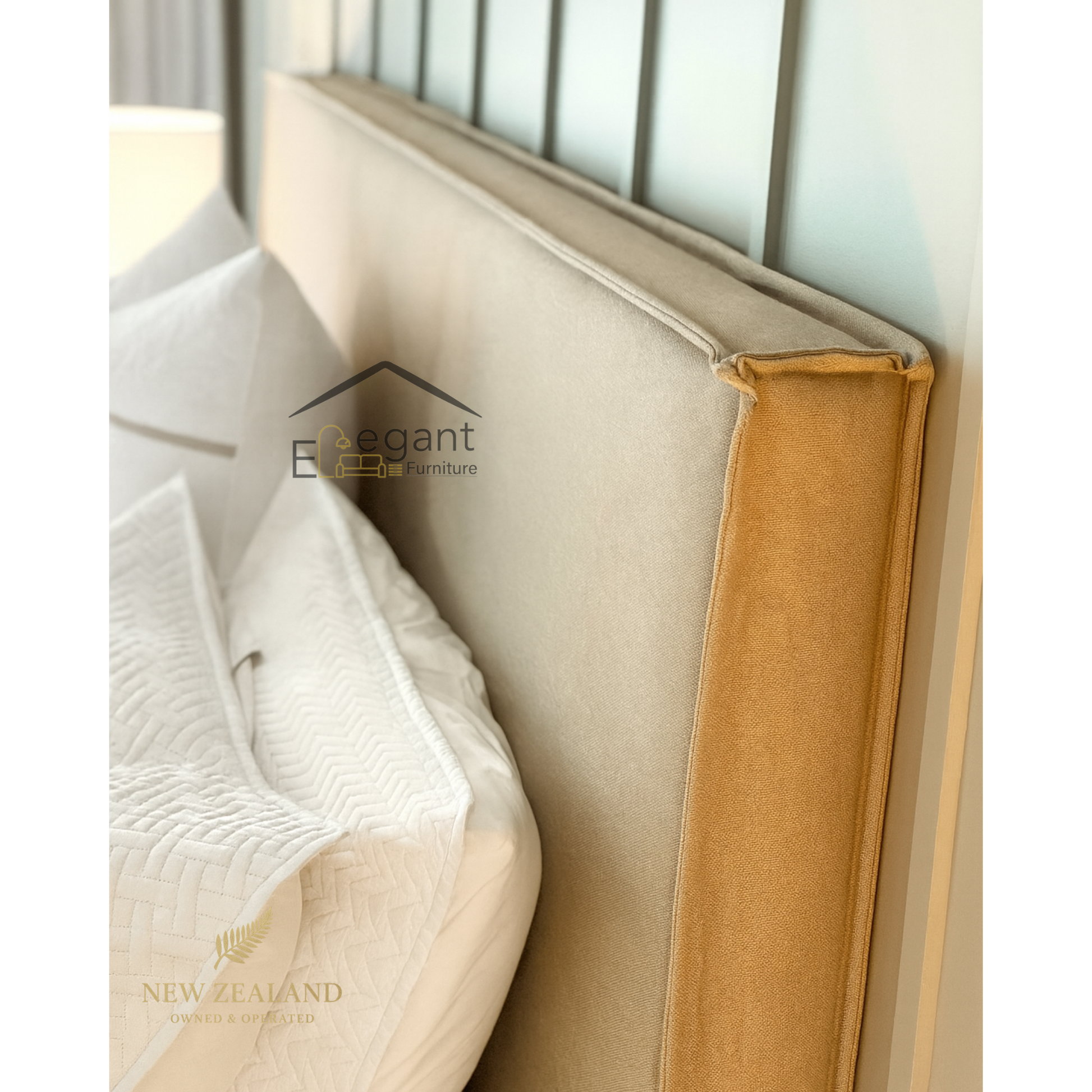 This headboard is made from sturdy NZ Pine Wood and MDF, upholstery done by local artisans of New Zealand.