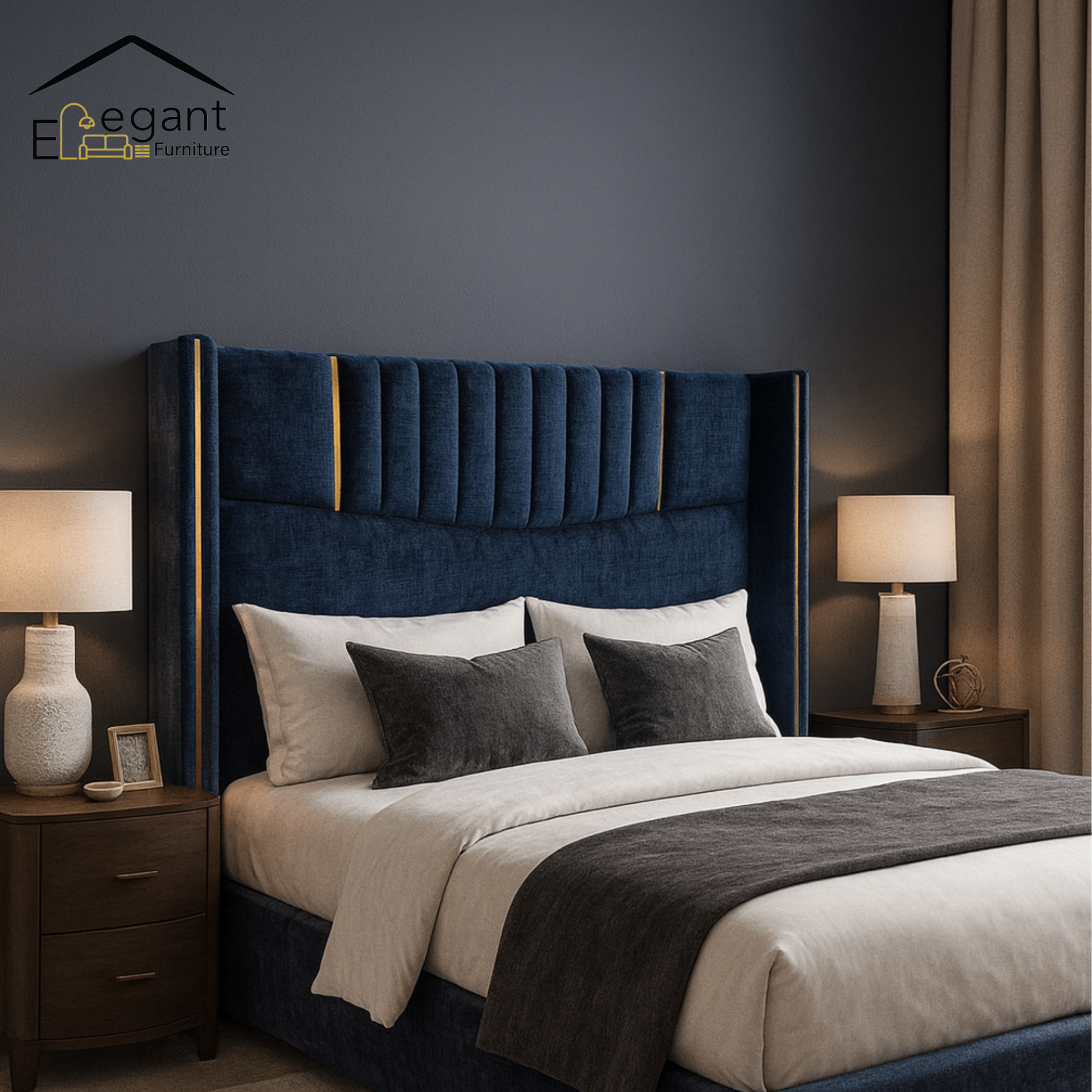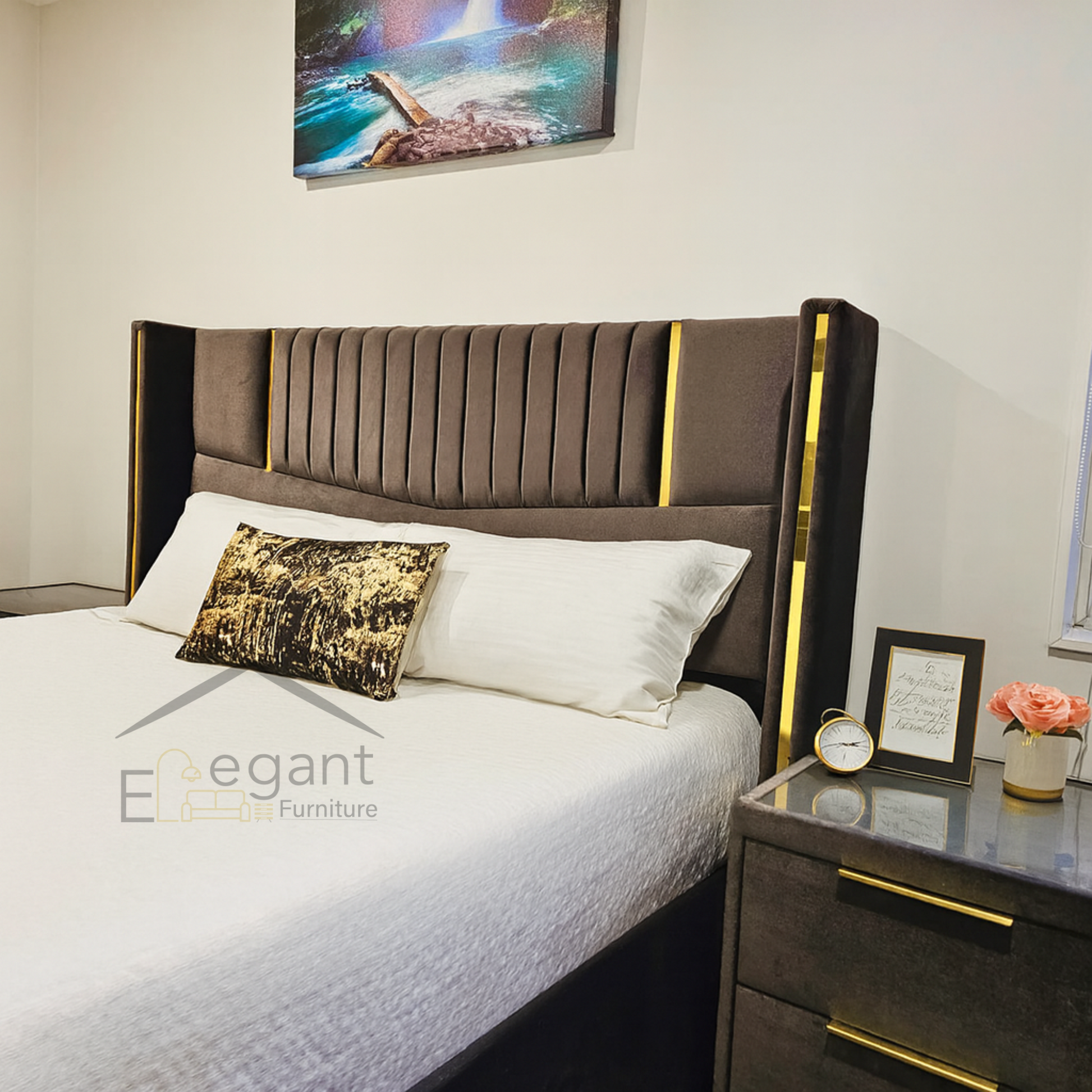 The Opulent Strip Headboard, proudly made in New Zealand, offers unmatched versatility with customization available in any size and over 50 fabric color options. Crafted with premium materials, the Samy Glossy Gold Strip Elegance Headboard combines timeless sophistication with exceptional durability, delivering a luxurious and stylish addition to any bedroom.