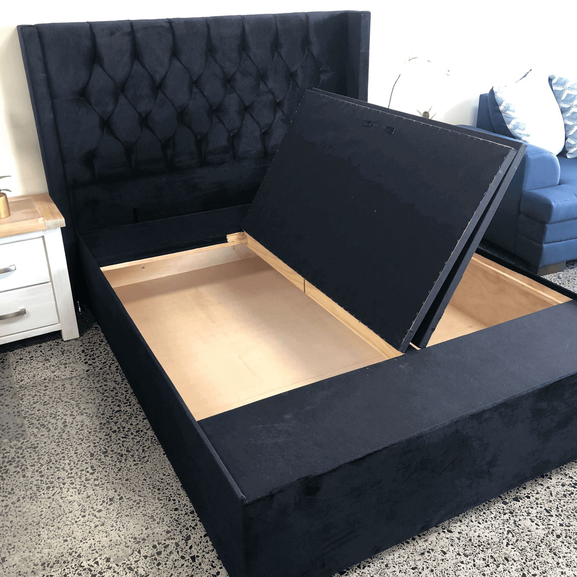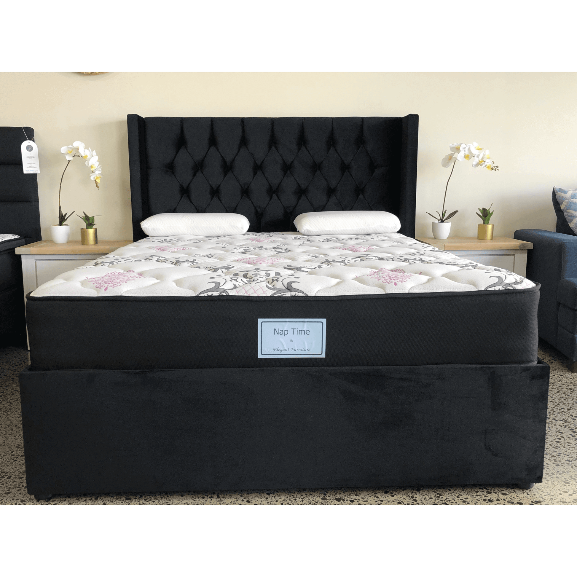 Nap Time Mattress + Storage Base + Wingback Buttoned Headboard