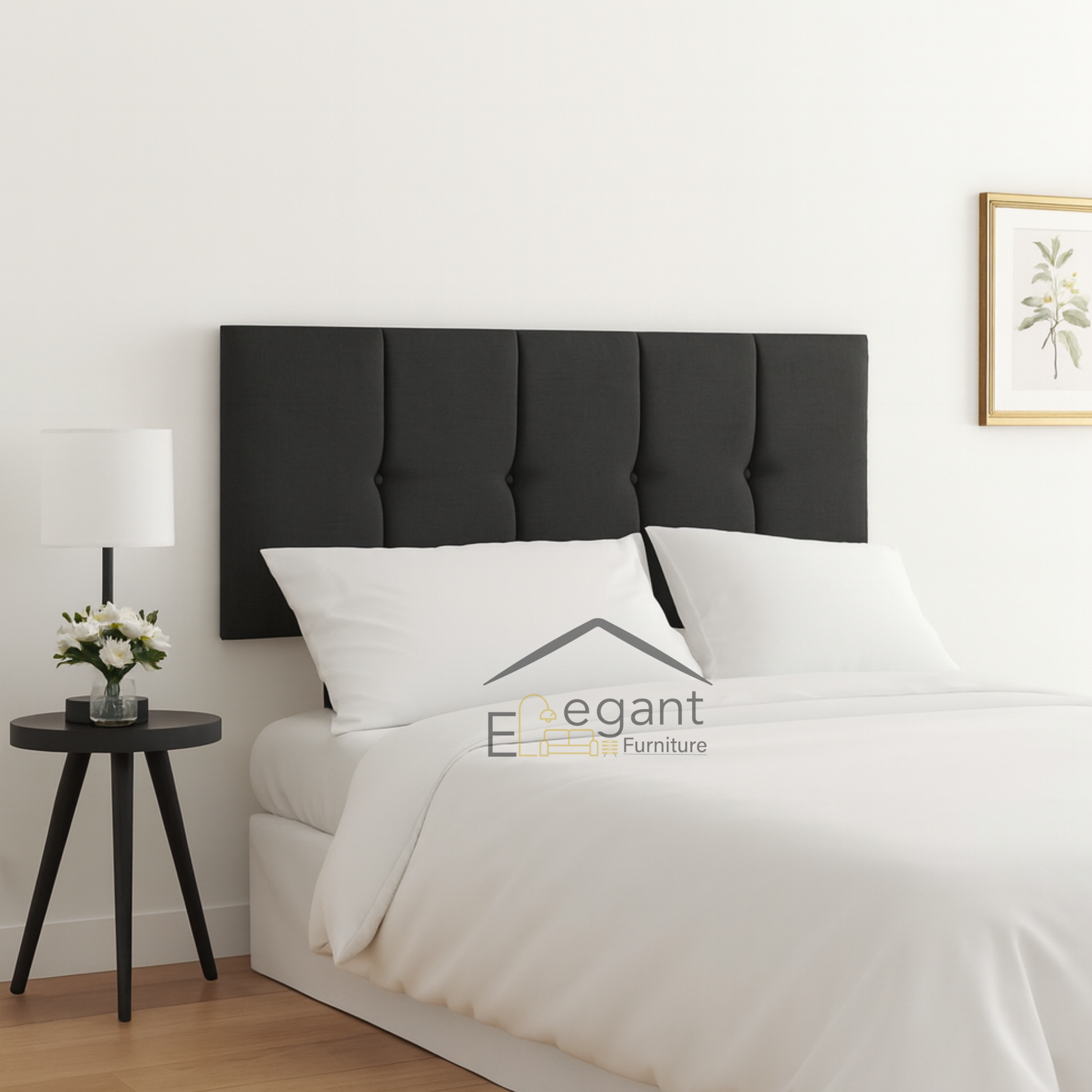Keeping up with its persistent offering of high-quality and luxurious bed bases, Elegant Furniture brings to you its beautiful Rugby headboard. This upholstered designer headboard with its tufted buttons glams up any room that it is a part of.