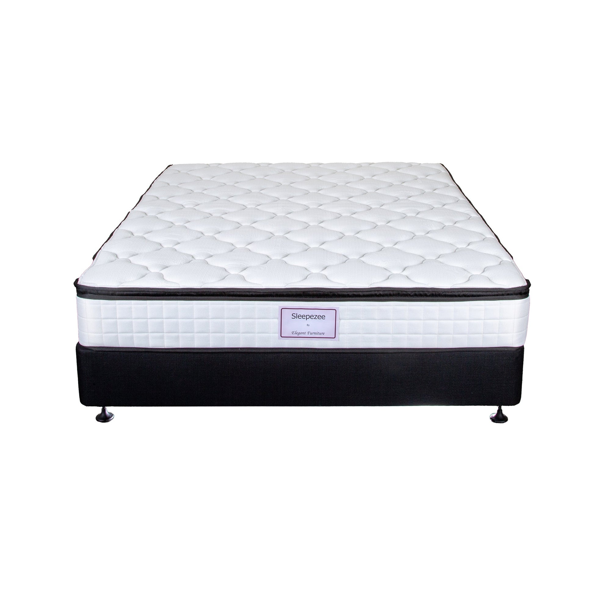 Our Sleepezee Bonnell Euro Top beds come with Bonnell Spring, White Aloe Vera Top Panel quilted with 20mm foam & fibre, 20mm Roll Foam and white square quilted fabric mattress.