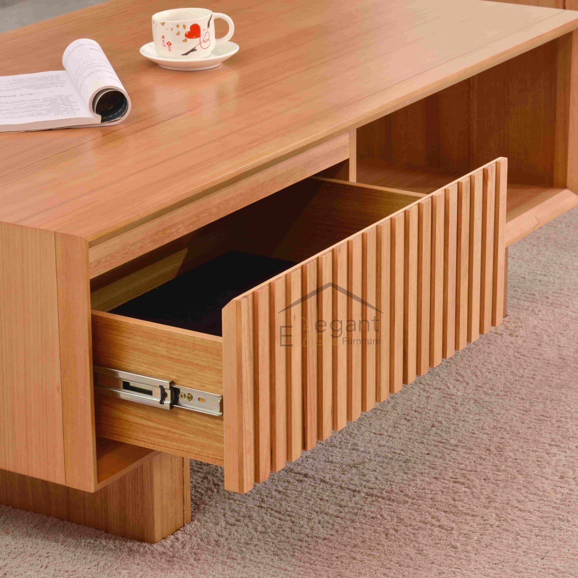 Vela Coffee Table | 1 Drawer + Open Shelf | Premium Timber Coffee Table