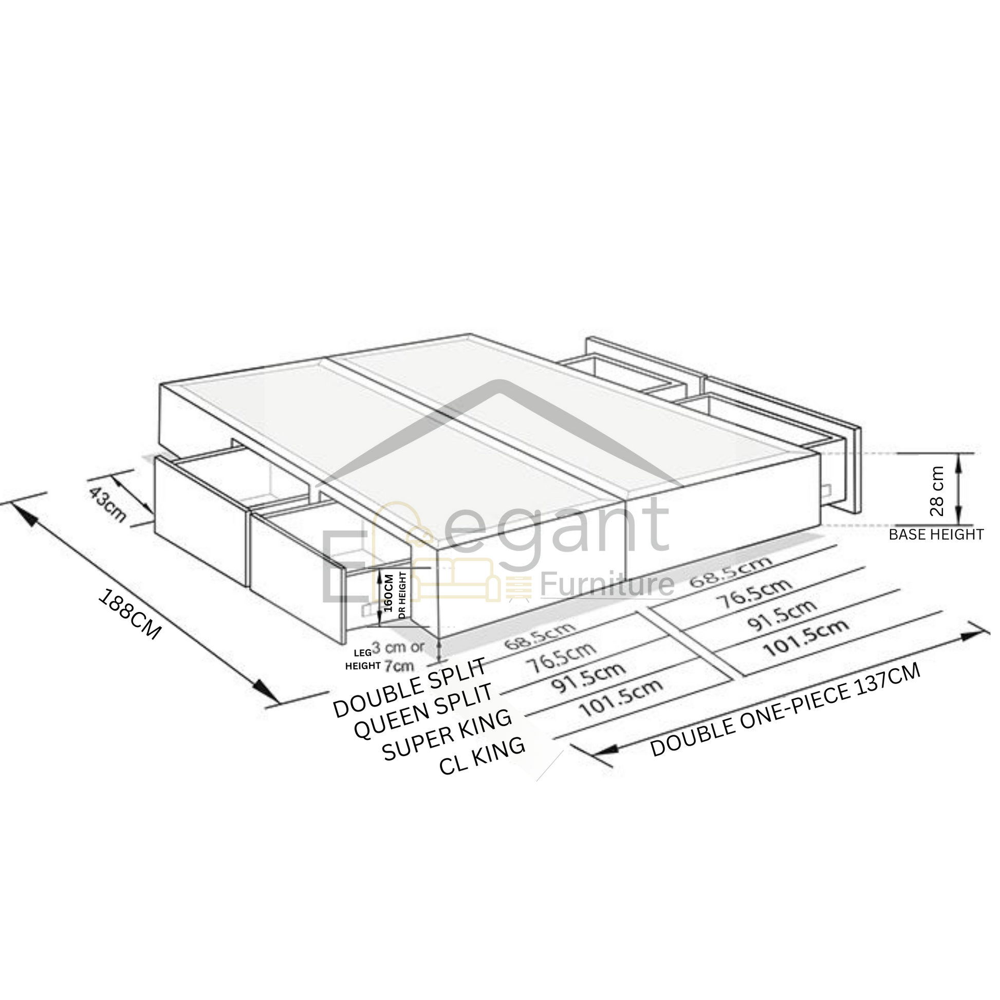 Perfect for maximizing storage space without compromising on style, the Elegant Furniture Double Melamine Drawer Bed Base is the ultimate choice for a clutter-free, modern bedroom. Whether you’re looking to store bedding, clothing, or other essentials, this bed base offers the functionality you need with the elegance you deserve.