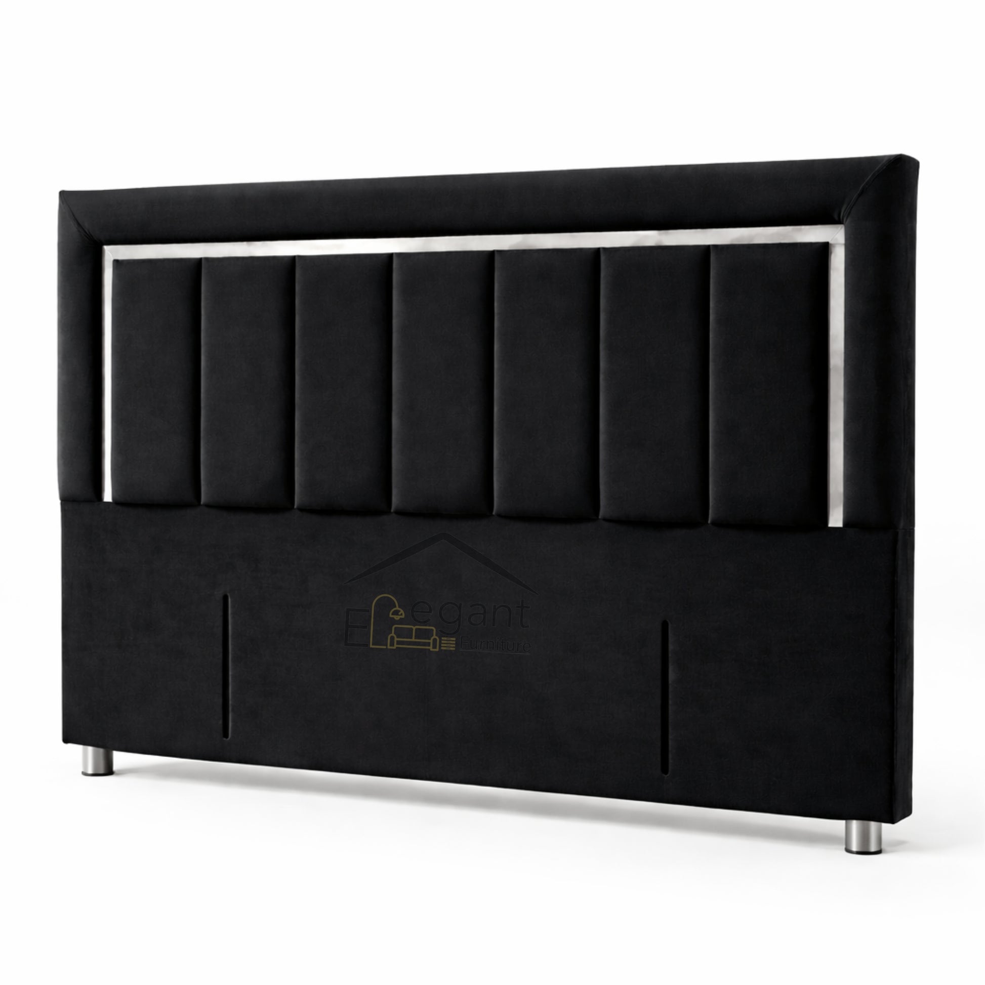 The Windsor Headboard is a refined statement piece designed to bring a hotel-style finish to your bedroom. With deep vertical panels and a sleek metal trim detail, it delivers a clean, modern look while adding warmth and depth to the space.